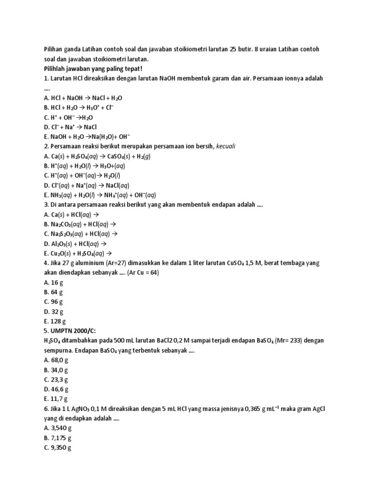Contoh Soal Dan Pembahasan Stoikiometri Larutan from imgv2-1-f.scribdassets.com We did not find results for: Soal dan pembahasan stoikiometri pdf. Check spelling or type a new query. Maybe you would like to learn more about one of these?